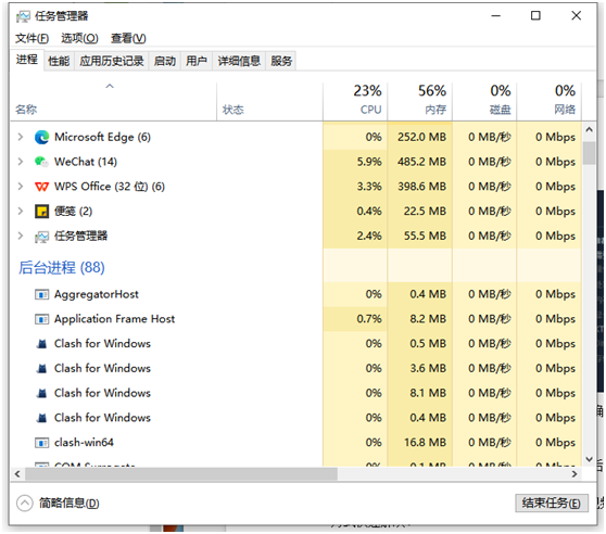 2.檢視並關閉後臺佔用較高的程式,選擇並點選結束任務。