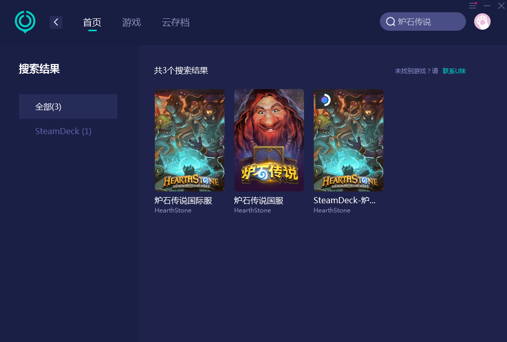 第四步:于UU加速器内搜索《炉石传说》,点击相应游戏图标,一键启动加速。