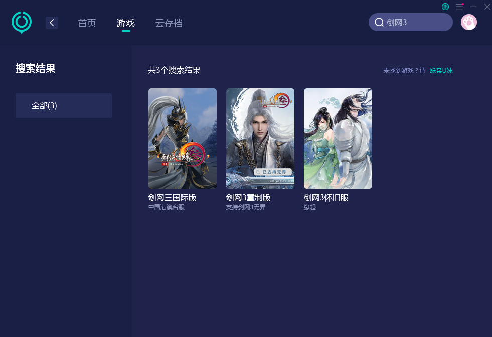 第四步:在UU加速器内搜索《剑网3》,点击对应游戏图标即可启动加速服务