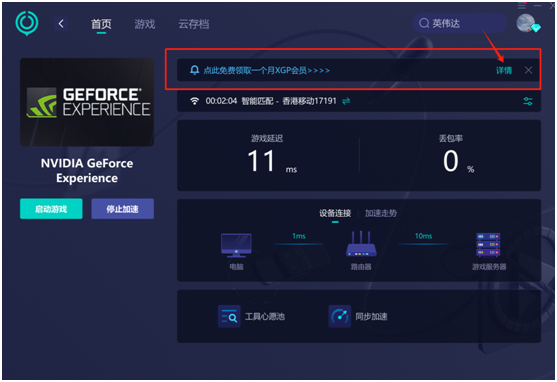 4.打开UU加速器,搜索“XGP”,在加速服务的详情界面,“点击免费领取一个月XGP会员”旁边的“详情”按钮,随后仔细浏览展示的信息,找到对应的下载入口。根据您的操作系统版本以及显卡的精确型号,从列出的多个下载选项中选择适合您设备的GeForce Experience安装程序进行下载。下载过程完成后,请遵循屏幕上的指示逐步完成安装程序。